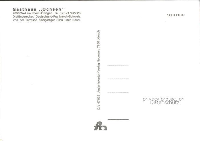 32212768 oetlingen Weil Rhein Gasthaus Ochsen postalisch nicht gelaufen Erhaltung siehe scans KatCode: 11110008336091