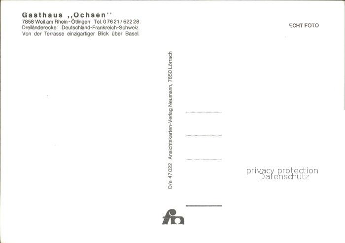 32212757 oetlingen Weil Rhein Gasthaus Ochsen postalisch nicht gelaufen Erhaltung siehe scans KatCode: 11110008336091