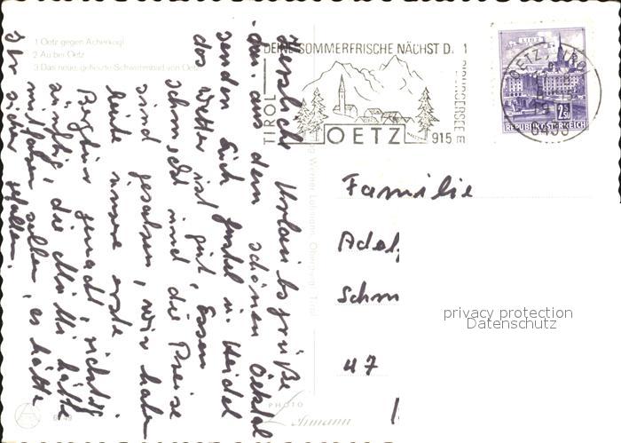 72446439 alte Postkarte Oetz Acherkogel Schwimmbad postalisch gelaufen Erhaltung siehe scans KatCode: 11390334070214