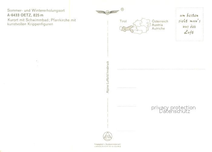 73295888 Oetz Fliegeraufnahme mit Pfarrkirche und Schwimmbad postalisch nicht gelaufen Erhaltung siehe scans [WerneD78] KatCode: 11390334070214