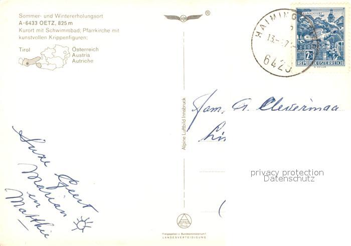 73205079 alte Postkarte Oetz Fliegeraufnahme Tschirgant postalisch gelaufen Erhaltung siehe scans [NatalD47] KatCode: 11390334070214