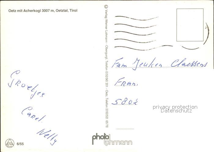 72092965 alte Postkarte Oetz mit Acherkogl Oetztal postalisch gelaufen Erhaltung siehe scans KatCode: 11390334070214
