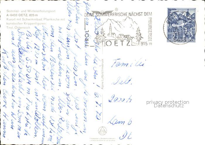 72496243 alte Postkarte Oetz mit Tschirgant Fliegeraufnahme postalisch gelaufen Erhaltung siehe scans KatCode: 11390334070214