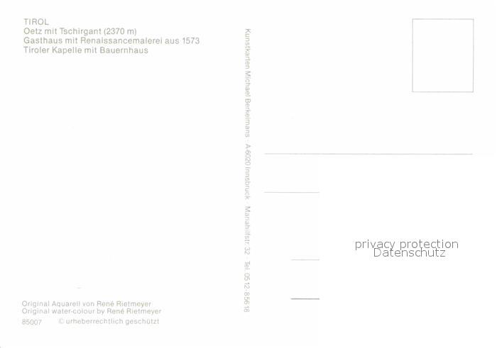 72848852 Oetz mit Tschirgant Gasthaus Renaissancemalerei 16. Jhdt. Tiroler Kapelle Bauernhaus Kuenstlerkarte postalisch nicht gelaufen Erhaltung siehe scans [FriedD77] KatCode: 11390334070214