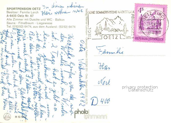 72915602 alte Postkarte Oetz Sportpension Oetz postalisch gelaufen Erhaltung siehe scans [NatalD47] KatCode: 11390334070214