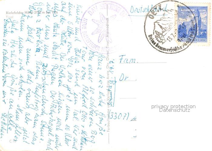13235233 alte Postkarte oetz Tirol Bielefelder Huette Stubaier Alpen postalisch gelaufen Erhaltung siehe scans [FriedD77] KatCode: 11390334070214