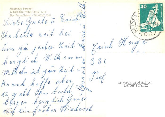 73073727 alte Postkarte oetz Tirol Gasthaus Berghof postalisch gelaufen Erhaltung siehe scans [FriedD77] KatCode: 11390334070214