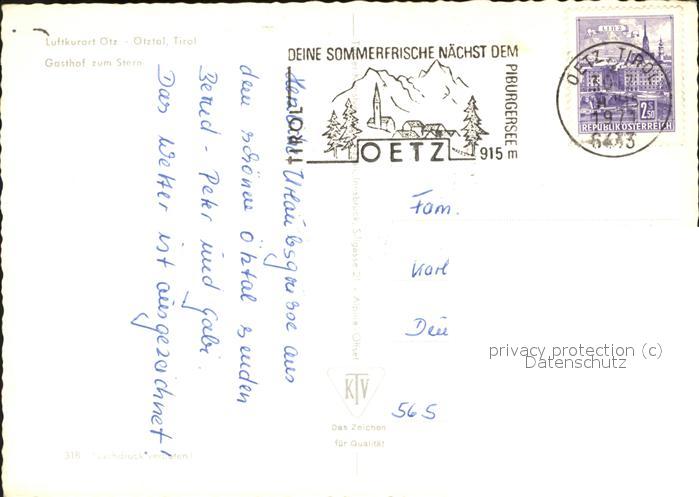 71505131 alte Postkarte oetz Tirol Gasthof zum Stern postalisch gelaufen Erhaltung siehe scans KatCode: 11390334070214