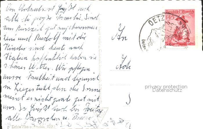 72161544 alte Postkarte oetz Tirol Gesamtansicht mit Alpenpanorama See postalisch gelaufen Erhaltung siehe scans KatCode: 11390334070214