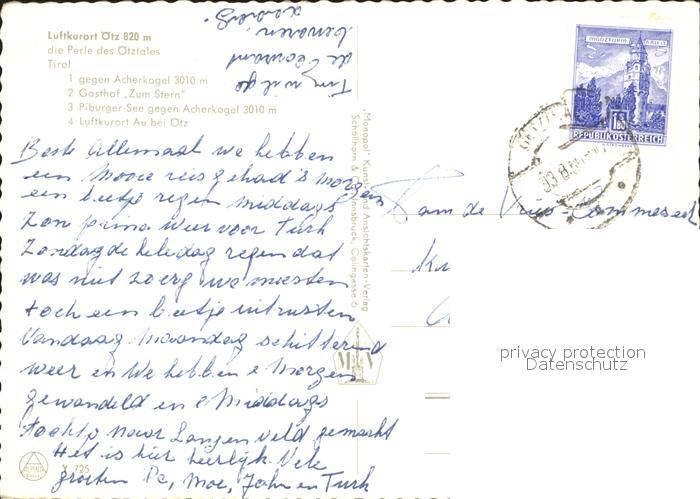 72097512 alte Postkarte oetz Tirol mit Acherkogel Gasthof Zum Stern Piburger See Au bei oetz postalisch gelaufen Erhaltung siehe scans KatCode: 11390334070214
