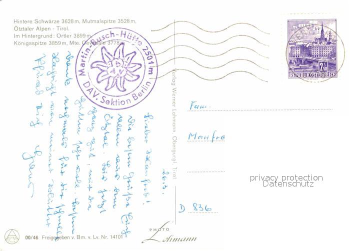 72693496 alte Postkarte oetztal Tirol Alpen Hintere Schwaerze Ortler postalisch gelaufen Erhaltung siehe scans [KathaD79] KatCode: 11390334070214