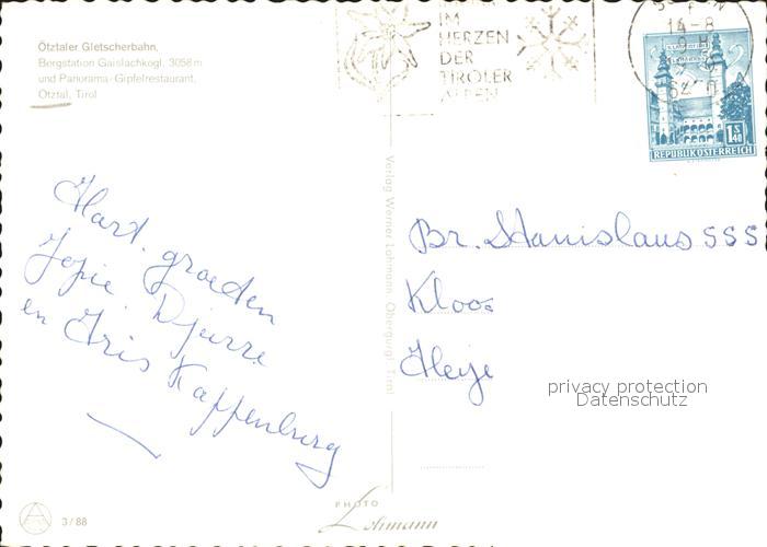 71915539 alte Postkarte oetztal Tirol Bergstation Gaislachkogl mit Gipfelrestaurant postalisch gelaufen Erhaltung siehe scans KatCode: 11390334070214