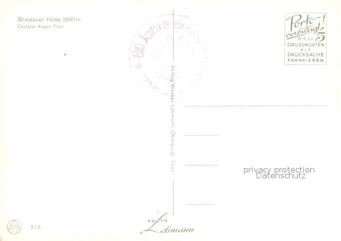 72850564 oetztal Tirol Breslauer Huette postalisch nicht gelaufen Erhaltung siehe scans [AndreD76] KatCode: 11390334070214