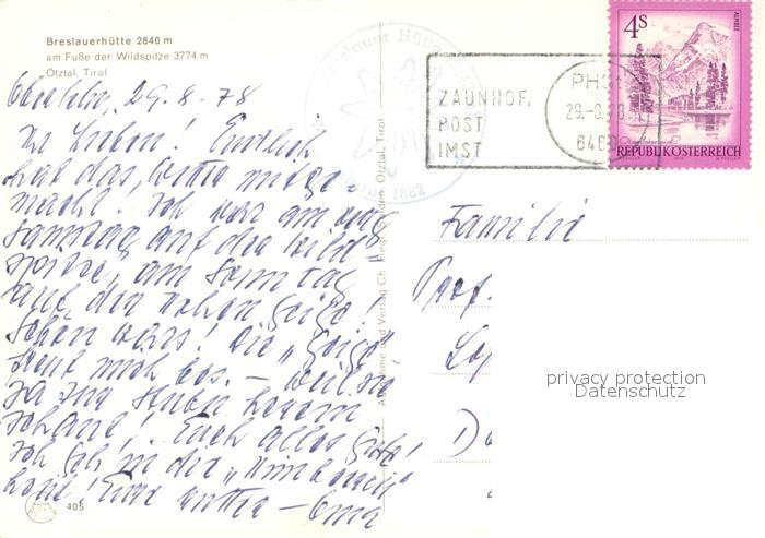 73656059 alte Postkarte oetztal Tirol Breslauerhuette mit Wildspitze postalisch gelaufen Erhaltung siehe scans [WerneD78] KatCode: 11390334070214