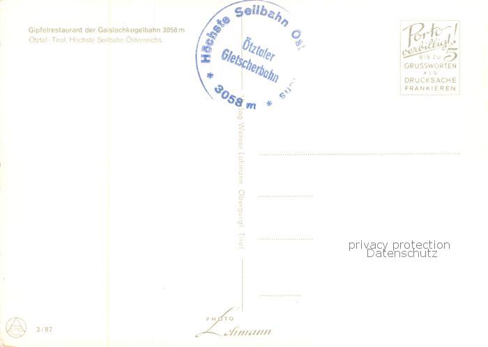 73785866 oetztal Tirol Gipfelrestaurant der Gaislachkogelbahn postalisch nicht gelaufen Erhaltung siehe scans [WerneD78] KatCode: 11390334070214