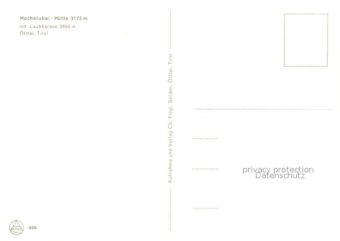 73049217 oetztal Tirol Hochstubai Huette Laubkarsee postalisch nicht gelaufen Erhaltung siehe scans [KathaD81] KatCode: 11390334070214