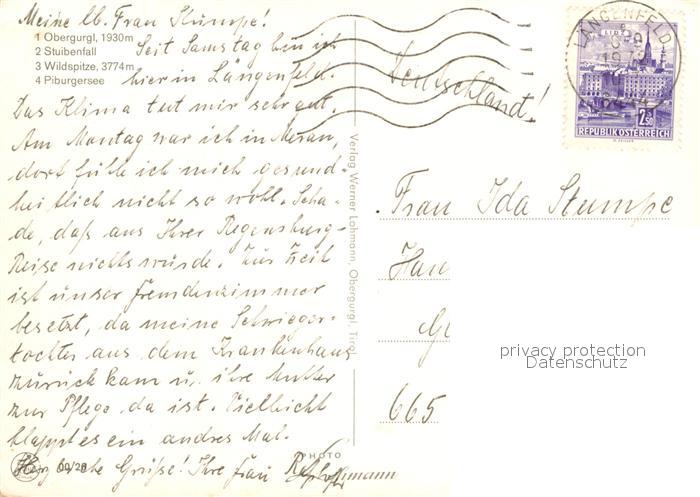 73312358 alte Postkarte oetztal Tirol Obergurgl Stuibenfall Wasserfall Wildspitze Piburgersee oetztaler Alpen postalisch gelaufen Erhaltung siehe scans [FriedD77] KatCode: 11390334070214