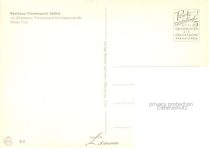 73162283 oetztal Tirol Rasthaus Timmelsjoch Berggaststaette oetztaler Alpen postalisch nicht gelaufen Erhaltung siehe scans [FriedD77] KatCode: 11390334070214
