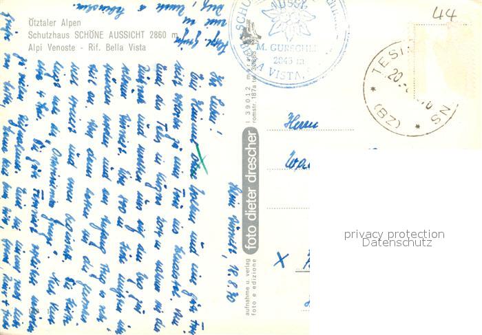 73327274 alte Postkarte oetztal Tirol Schutzhaus Schoene Aussicht postalisch gelaufen Erhaltung siehe scans [WerneD78] KatCode: 11390334070214