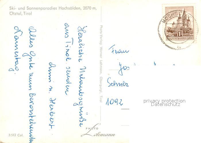 73024563 alte Postkarte oetztal Tirol Ski Sonnenparadies Hochsoelden Winter postalisch gelaufen Erhaltung siehe scans [KathaD81] KatCode: 11390334070214