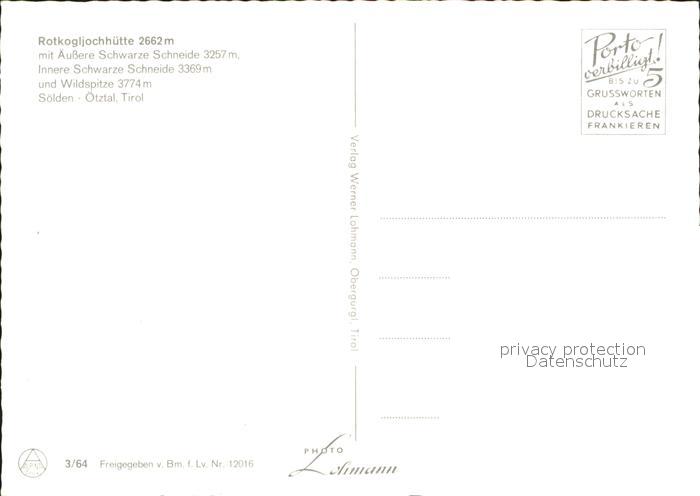 71872220 oetztal Tirol Soelden Rotkogljochhuette Wildspitze Fliegeraufnahme Edelweiss postalisch nicht gelaufen Erhaltung siehe scans KatCode: 11390334070214