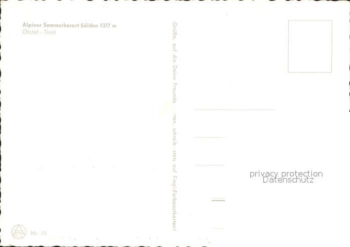 72455696 Oetztal Tirol Sommerkurort Soelden postalisch nicht gelaufen Erhaltung siehe scans KatCode: 11390334070208