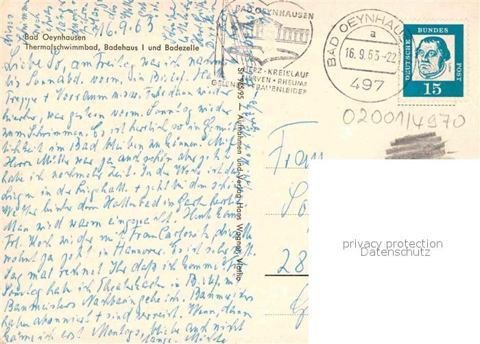 72698922 alte Postkarte Oeynhausen Bad Kuranlagen Badehaus Badezelle postalisch gelaufen Erhaltung siehe scans [KathaD79] KatCode: 11110005770004