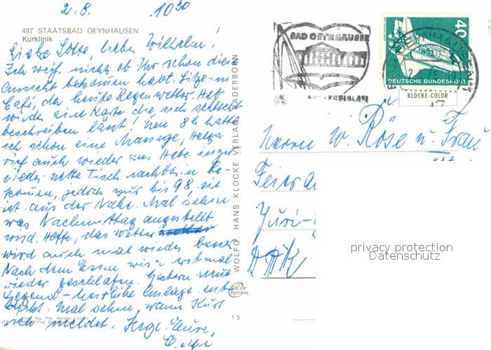 72917174 alte Postkarte Oeynhausen Bad Kurklinik Fliegeraufnahme postalisch gelaufen Erhaltung siehe scans [NatalD47] KatCode: 11110005770004