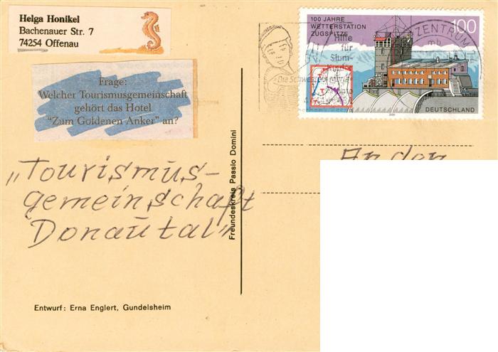 73914415 alte Postkarte Offenau BW Ehem Sole Reservoir Zeichnung postalisch gelaufen Erhaltung siehe scans [WerneD78] KatCode: 11110008125079