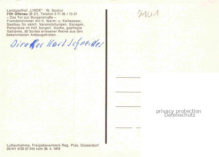 74051033 Offenau BW Landgasthof Linde postalisch nicht gelaufen Fliegeraufnahme Erhaltung siehe scans [FriedD77] KatCode: 11110008125079