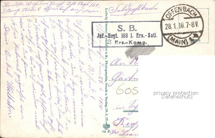 Offenbach Main Friedrichschule Stempel Inf.-Regt. 168 I. Ers.-Batl. 3 Ers.-Komp.