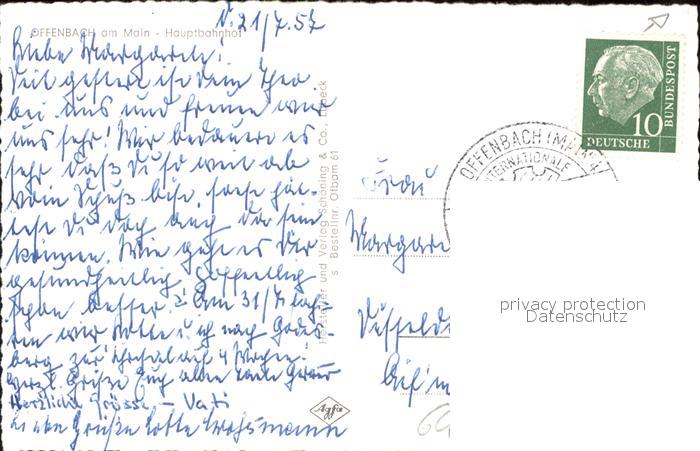 41585799 alte Postkarte Offenbach Main Hauptbahnhof postalisch gelaufen Erhaltung siehe scans KatCode: 11110006413000