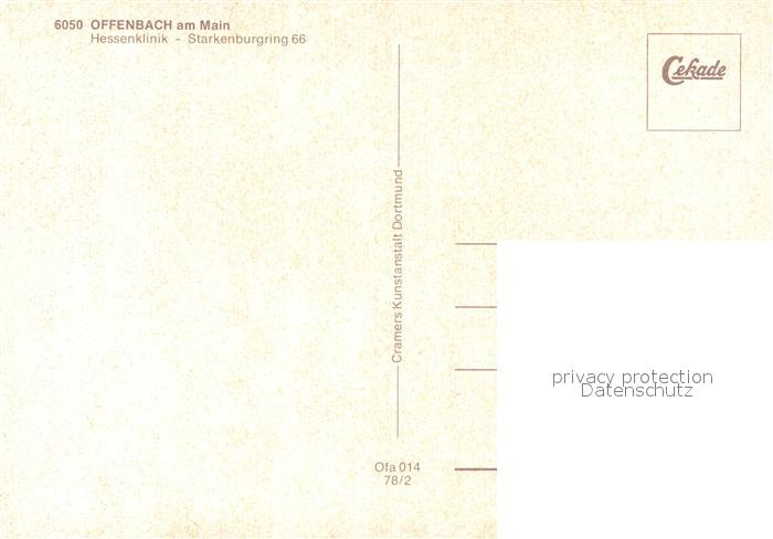 73255249 Offenbach Main Hessenklinik Starkenburgring postalisch nicht gelaufen Erhaltung siehe scans [WerneD78] KatCode: 11110006413000