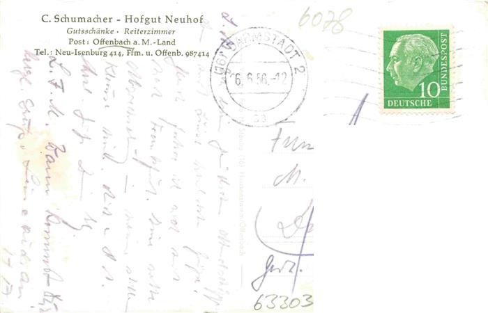 73972081 alte Postkarte OFFENBACH MAIN Hofgut Neuhof Gutsschaenke Reiterzimmer postalisch gelaufen Erhaltung siehe scans [FriedD77] KatCode: 11110006413000