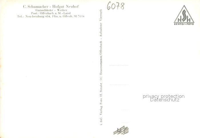 73698487 Offenbach Main Hofgut Neuhof Gutsschaenke Weiher postalisch nicht gelaufen Erhaltung siehe scans [FriedD77] KatCode: 11110006413000