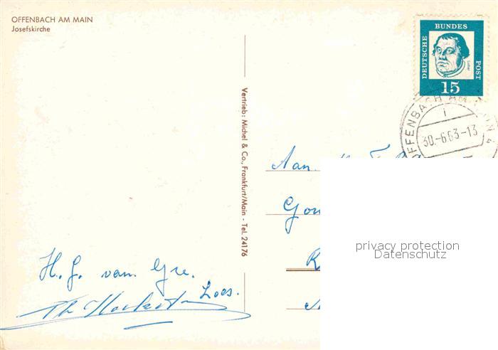 72655051 alte Postkarte Offenbach Main Josefskirche postalisch gelaufen Erhaltung siehe scans [LiesaD40] KatCode: 11110006413000