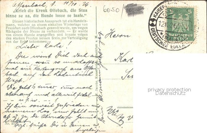 31841565 alte Postkarte Offenbach Main Krieh die Kraenk Offebach Frankfurterstrasse Jahr 1836 postalisch gelaufen Erhaltung siehe scans KatCode: 11110006413000