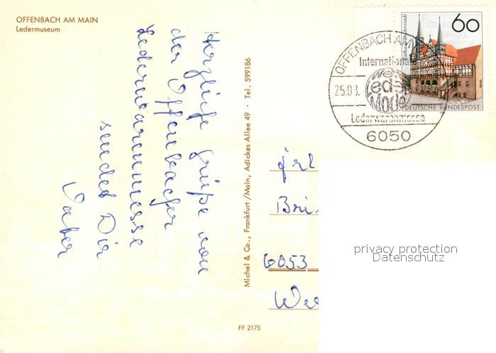 73611092 alte Postkarte Offenbach Main Ledermuseum postalisch gelaufen Erhaltung siehe scans [LiesaD40] KatCode: 11110006413000