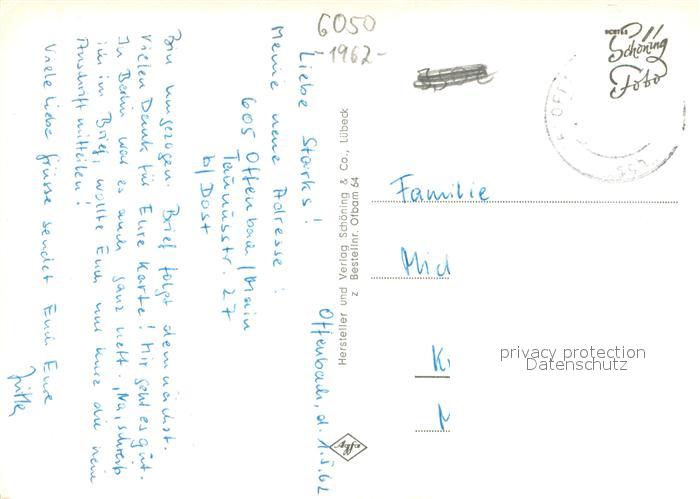 73698478 alte Postkarte Offenbach Main Lederstadt Messehalle Kaffee Schloss postalisch gelaufen Erhaltung siehe scans [FriedD77] KatCode: 11110006413000