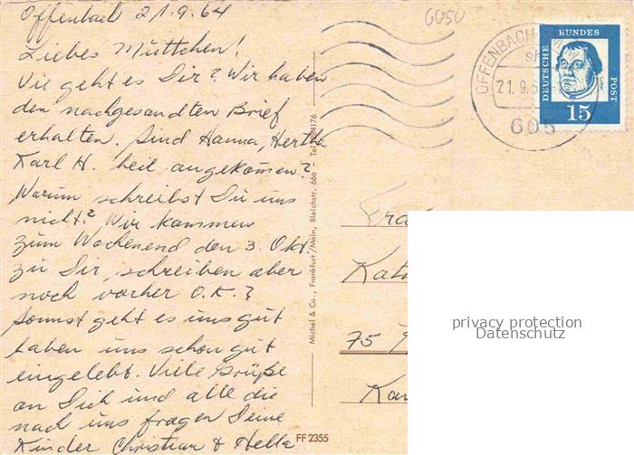 74065858 alte Postkarte OFFENBACH MAIN Parkbad Ledermuseum Ortspartie Bruecke postalisch gelaufen Erhaltung siehe scans [WerneD78] KatCode: 11110006413000