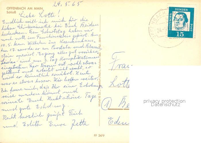73255238 alte Postkarte Offenbach Main Schloss postalisch gelaufen Erhaltung siehe scans [WerneD78] KatCode: 11110006413000