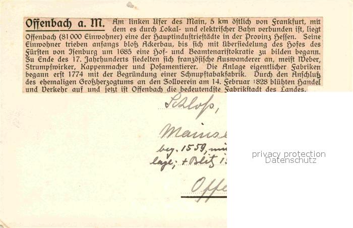 72794924 Offenbach Main Schloss Mainpromenade postalisch nicht gelaufen Erhaltung siehe scans [AndreD76] KatCode: 11110006413000