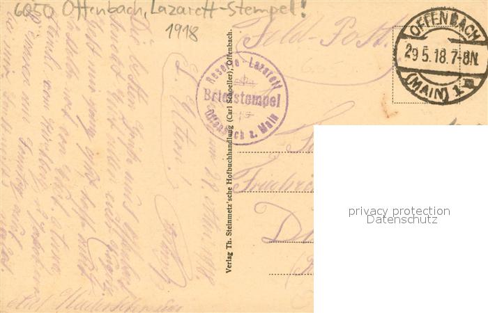 73706188 alte Postkarte Offenbach Main Stadtkrankenhaus Lazarett-Stempel Feldpost postalisch gelaufen Feldpost – Stempel Erhaltung siehe scans [LiesaD40] KatCode: 11110006413000