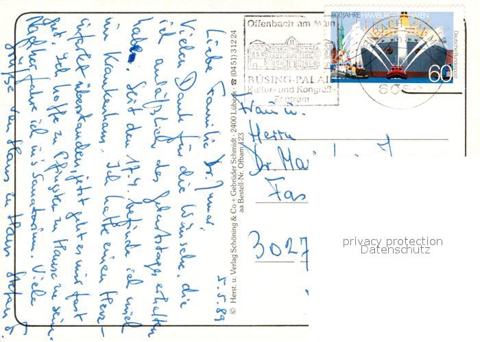 73600567 alte Postkarte Offenbach Main Teilansichten Hochhaus Kirche Fontaene Schloss Brunnen Partie am Main postalisch gelaufen Erhaltung siehe scans [FriedD77] KatCode: 11110006413000