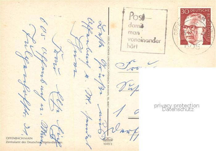 73125492 alte Postkarte Offenbach Main Zentralamt des Deutschen Wetterdienstes postalisch gelaufen Erhaltung siehe scans [FriedD77] KatCode: 11110006413000
