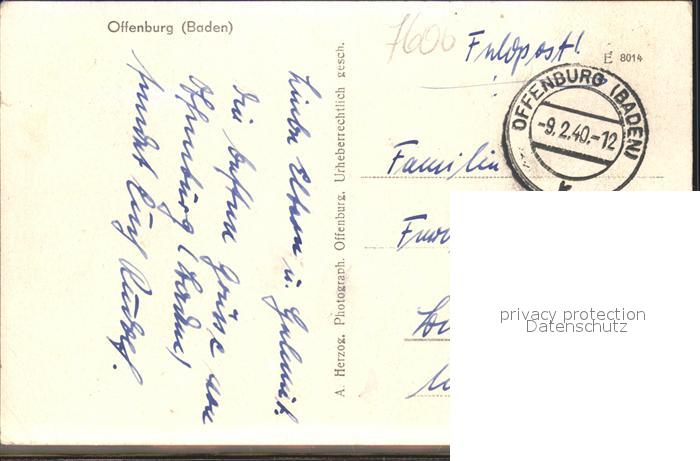31821952 alte Postkarte Offenburg postalisch gelaufen Feldpost Erhaltung siehe scans KatCode: 11110008317096