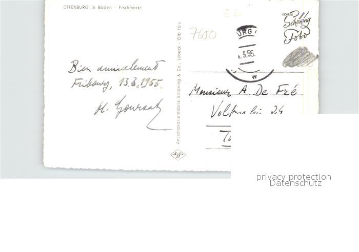 alte Postkarte Offenburg Fischmark postalisch gelaufen Erhaltung siehe scans