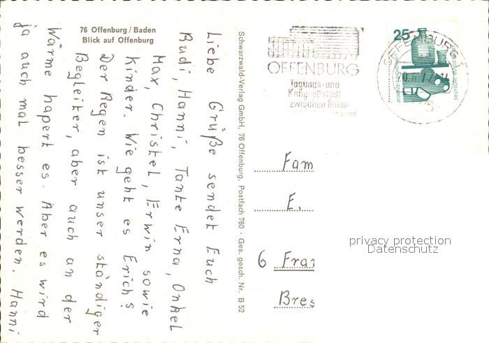 72051864 alte Postkarte Offenburg Fliegeraufnahme postalisch gelaufen Erhaltung siehe scans KatCode: 11110008317096