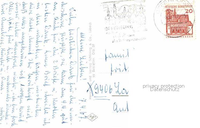 72813746 alte Postkarte Offenburg Gesamtansicht Loewenbrunnen Stadtgarten %ra postalisch gelaufen Erhaltung siehe scans [AndreD76] KatCode: 11110008317096