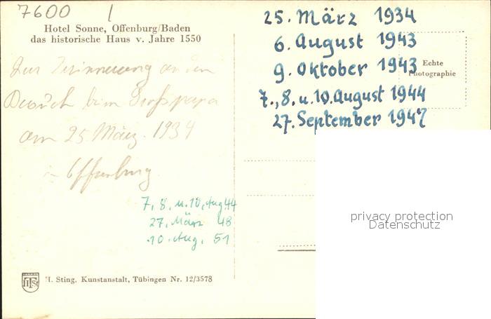 31727391 Offenburg Hotel Sonne Historische Haus postalisch nicht gelaufen KatCode: 11110008317096